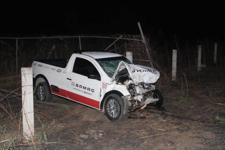 Tras el impacto la camioneta quedó sobre el carril que corre de sur a norte, mientras que la otra unidad salió de la carpeta asfáltica para terminar sobre una cerca.