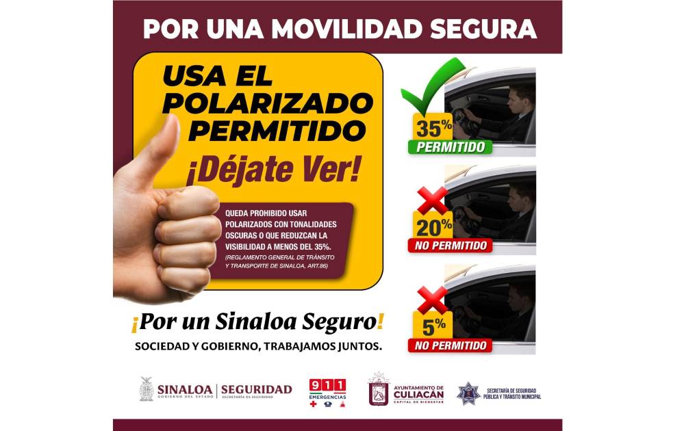 CULIACÁN._ Con el argumento de que el polarizado excesivo dificulta las labores de vigilancia preventiva al limitar la visibilidad dentro de los vehículos, la Secretaría de Seguridad Pública y Tránsito Municipal de Culiacán, en coordinación con autoridades estatales, dio inicio a la segunda etapa de una campaña enfocada en detectar y sancionar polarizados fuera de norma.