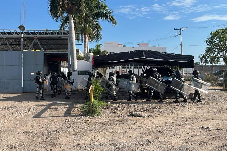 CULIACÁN. _ Elementos del Grupo Antimotines de la Guardia Nacional (GN), en coordinación con personal de la Policía Estatal Preventiva (PEP), se encuentran realizando un operativo de revisión en el Centro Penitenciario de Aguaruto, al poniente de la ciudad.
