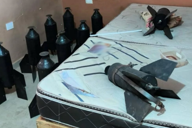 En otra intervención, corporaciones de los tres niveles de gobierno catearon un inmueble en Culiacán, donde fueron asegurados cargadores, cartuchos y 10 artefactos explosivos improvisados, cada uno con un peso aproximado de cinco kilos.