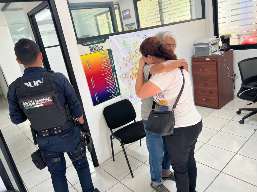 Tras difundirse su caso, familiares acudieron a las instalaciones de la Secretaría de Seguridad Pública y Tránsito Municipal (SSPyTM), para su reencuentro.
