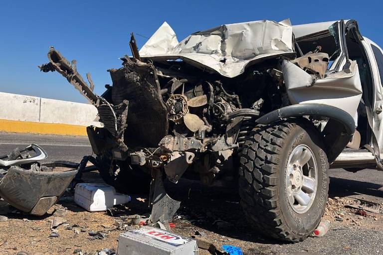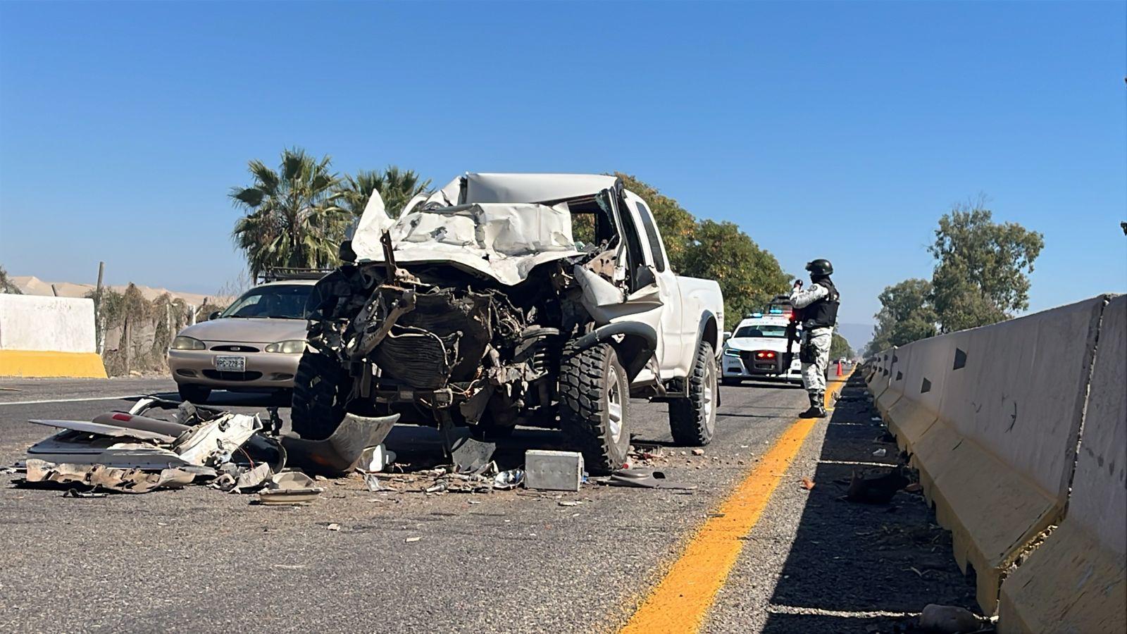 Una pareja quedó prensada dentro de una camioneta que se impactó contra un tráiler en el Libramiento Benito Juárez, por la entrada a la sindicatura de Aguaruto, en Culiacán.
