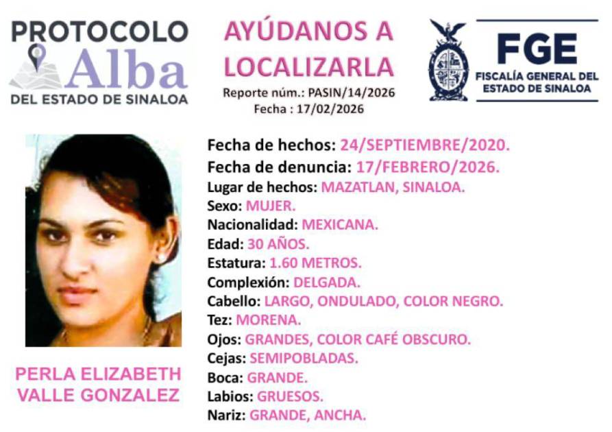 Perla Elizabeth Valle González, de 30 años, tiene casi seis años en calidad de desaparecida, al ser contactada por última ocasión en septiembre de 2020.