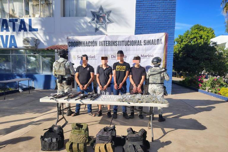 CULIACÁN._ Tras una persecución, elementos de la Guardia Nacional detuvieron a cuatro hombres que se encontraban en posesión de armas de fuego, chalecos balísticos y dosis de droga, en una acción registrada en la colonia Las Coloradas, en Culiacán.