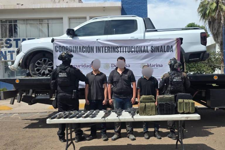 CULIACÁN._ Elementos del Grupo de Operaciones Especiales (GOES) de la Policía Estatal Preventiva detuvieron a tres personas en Culiacán, tras una persecución en la que además aseguraron armas de alto poder, municiones y un vehículo con reporte de robo.