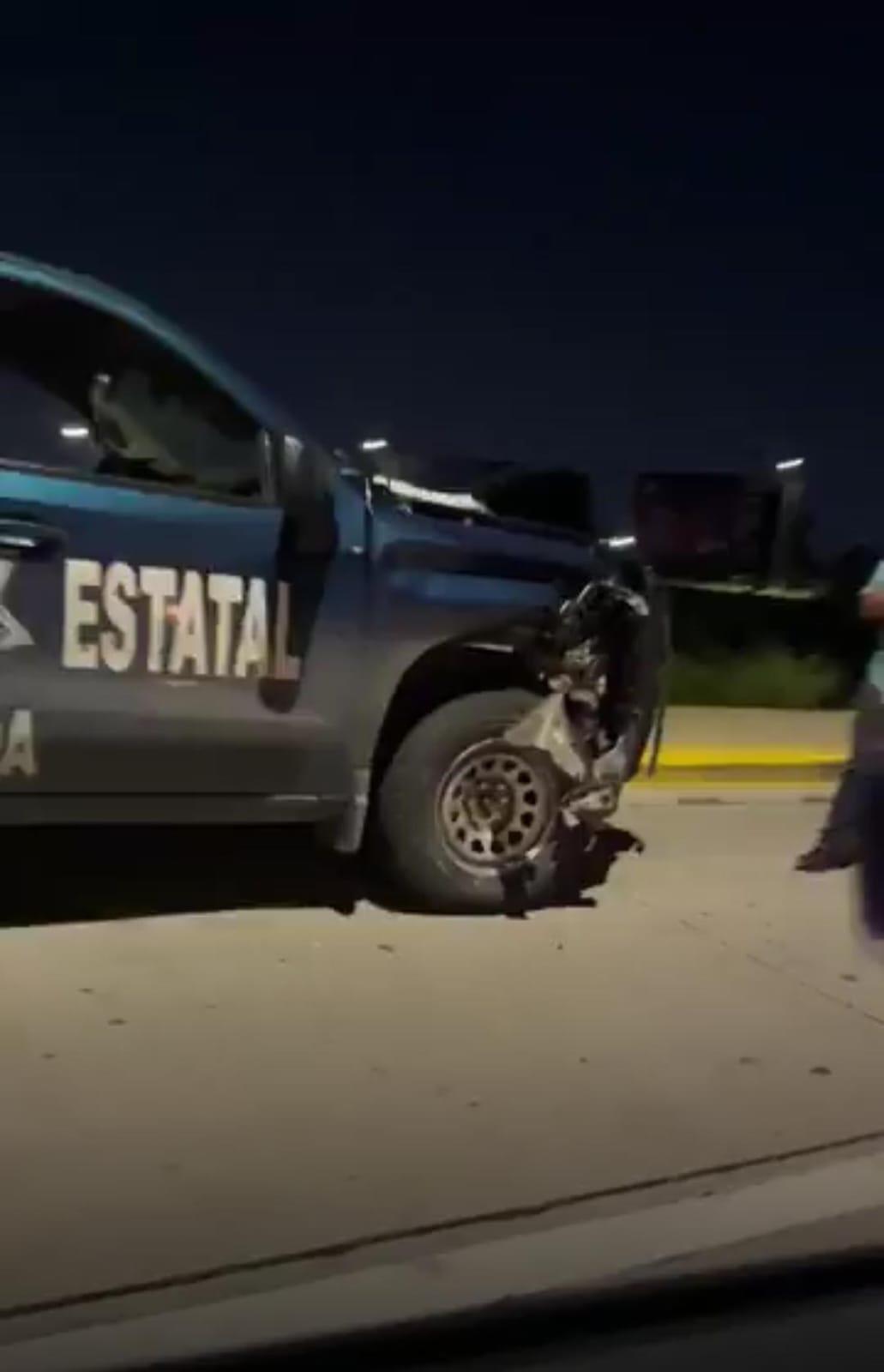 En tanto, una patrulla de la Policía Estatal Preventiva resultó dañada luego de impactarse en la curva que dirige hacia el bulevar ya mencionado con el Aeropuerto Internacional de Culiacán.