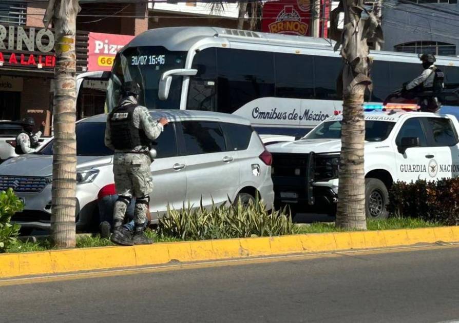 Los cuatro pasajeros de la camioneta SUV Suzuki Ertiga, que eran perseguidos por las camionetas con elementos de la Guardia Nacional, se detuvieron por el tráfico que se genera en el semáforo con la avenida Mazatlán y corrieron hacia los andadores del Infonavit Playas.