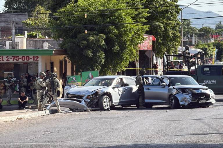 CULIACÁN._ Tres vehículos terminaron chocados tras una persecución y balacera registrada la tarde de este sábado en la colonia Rafael Buelna, en la zona sur de Culiacán.