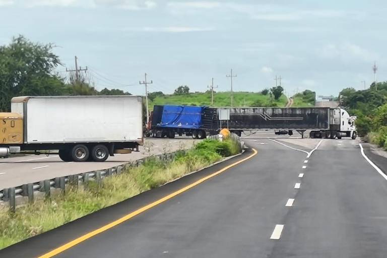 Persisten bloqueos en Escuinapa por tráiler y autobús inmovilizado