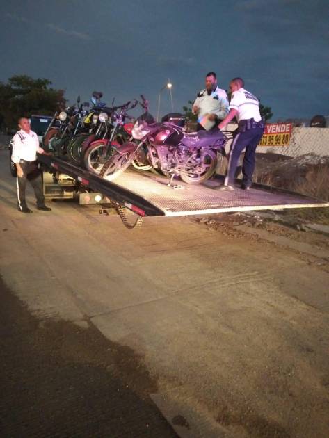 En las acciones implementadas durante el viernes por la noche, los agentes de Vialidad en coordinación con polícias preventivos detuvieron un total de 16 motocicletas en su mayoría por no portar la documentación correspondiente, falta de placas y casco.