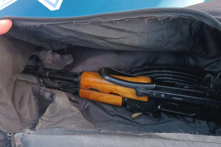 Al aproximarse para inspeccionar la zona, las autoridades se percataron de que en el interior de dicha mochila había un arma de fuego larga tipo AK-47 y un cargador abastecido con 15 cartuchos útiles.