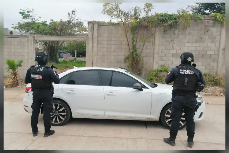 De acuerdo con la Secretaría de Seguridad Pública del Estado, elementos de la Policía Estatal detectaron un Audi A4 color blanco de modelo reciente, cuyas características coincidían con uno despojado momentos antes.