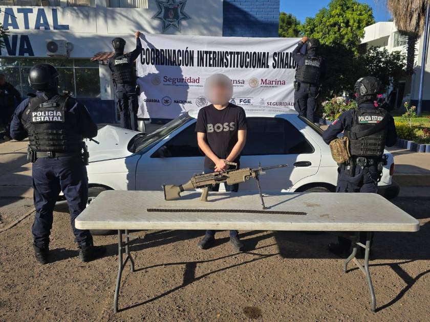 Un hombre armado con una ametralladora Minimi fue detenido por elementos de la Policía Estatal Preventiva de Sinaloa en el fraccionamiento La Conquista, en Culiacán.