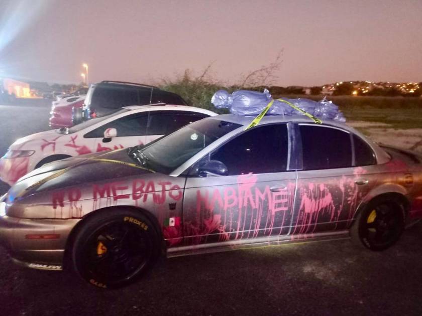 “Fue en el restaurante en la Avenida Emilio Barragán. Traían leyendas sobre violencia, muñecos de trapo insinuando encajuelados, llenos de sangre”, informó.