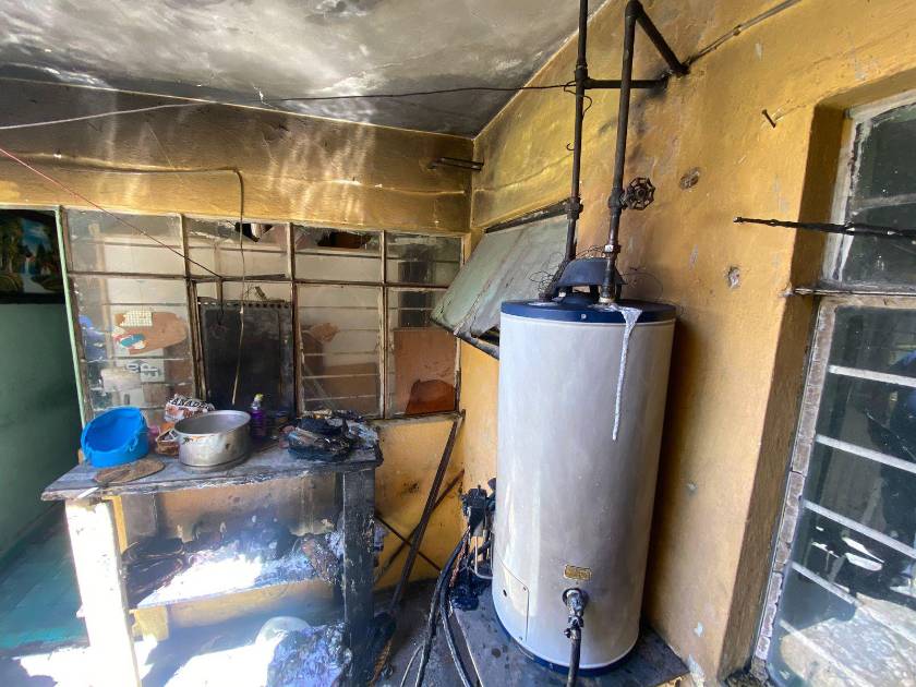 Al parecer, una fuga en la manguera del cilindro de gas que alimentaba un boIler, provocó una llamarada, el propietario de vivienda fue sorprendido por el flamazo y resultó con quemaduras de primer grado en uno de sus brazos, el fuego alcanzó algunos enseres domésticos y estuvo a punto de propagarse a la cocina y la sala de la vivienda, pero la intervención de los bomberos fue oportuna.