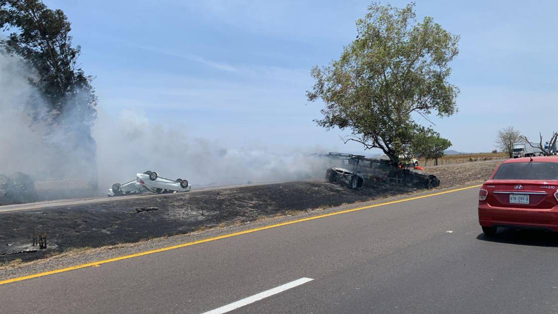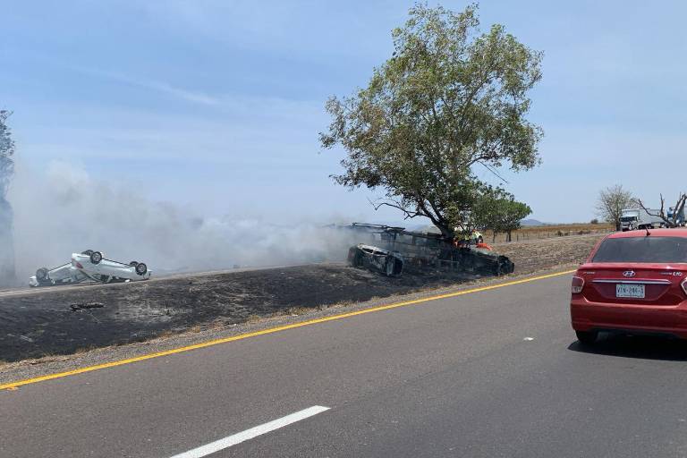 CULIACÁN. _ Un tráiler que transportaba vehículos se incendió en la maxipista Mazatlán a Culiacán, lo que provocó el cierre de la vialidad.