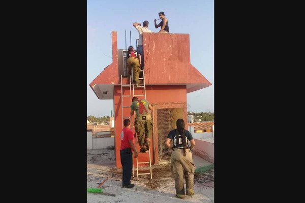 Al llegar al sitio los rescatistas ubicaron al afectado, quien dijo llamarse Vidal, de 23 años, y les comentó que minutos antes se había subido a lavar el tinaco, pero al meter una escalera se quedó atorado y comenzó a desesperarse, por lo que ya no pudo salir.