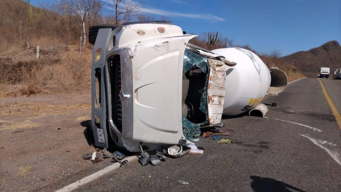 CULIACÁN. _ Un hombre identificado como Rafael, de aproximadamente 50 años de edad, quedó con lesiones en su cuerpo luego de quedar prensado en un camión revolvedor de concreto tras volcarlo en la carretera de La Campana, en el Municipio de Mocorito.