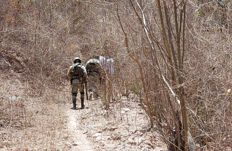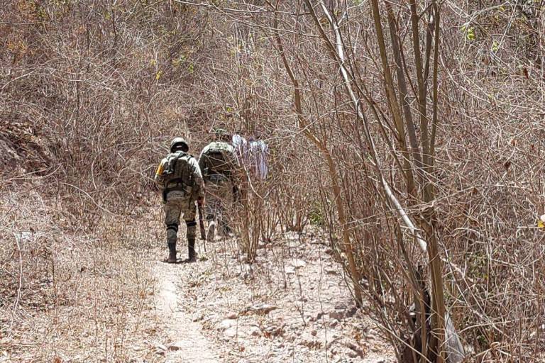 Elementos del Ejército, policías estatales y municipales resguardaron la zona del hallazgo durante las labores periciales.