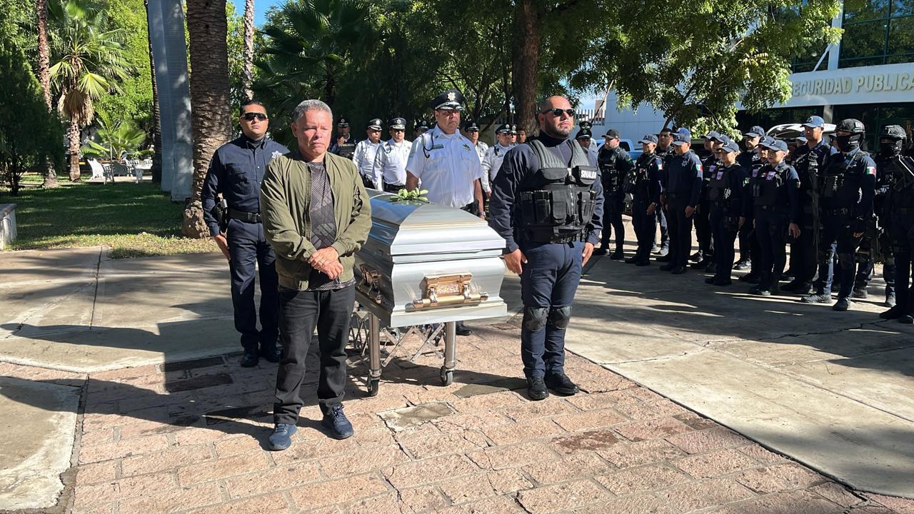 Con cuerpo presente, la mañana de este jueves se le rindió homenaje al agente de la Policía Municipal de Culiacán, Juan Carlos Ayala, asesinado hace unos días en el sector Barrancos.