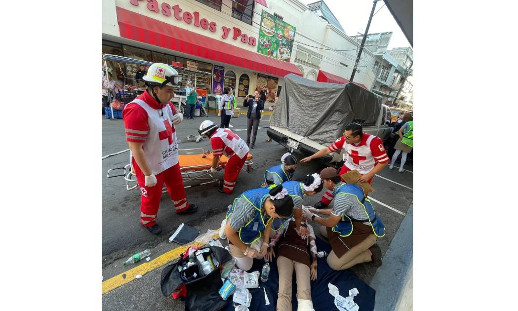 MAZATLÁN._ Un simulacro con temática de evacuación por incendio en el área de cocina y atención prehospitalaria básica, se realizó este martes en las instalaciones del restaurante Panamá, ubicado en la zona Centro de Mazatlán.