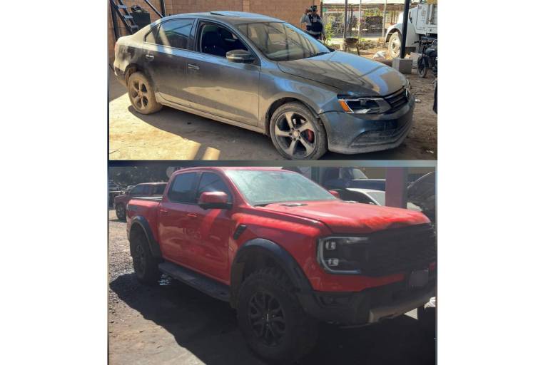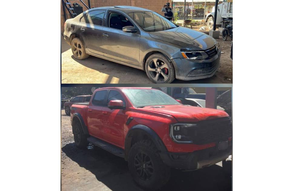 Además de un vehículo marca Nissan, tipo sedán, línea Versa, modelo 2023, color blanco, el cual presenta alteraciones en la serie; un vehículo marca Mercedes Benz, tipo sedán, línea GLE 43, modelo 2020, color gris, el cual presenta alteraciones en la serie; y un vehículo marca Dodge, tipo pickup, línea RAM TRX, modelo 2022, color blanco, con reporte de robo en Estados Unidos.