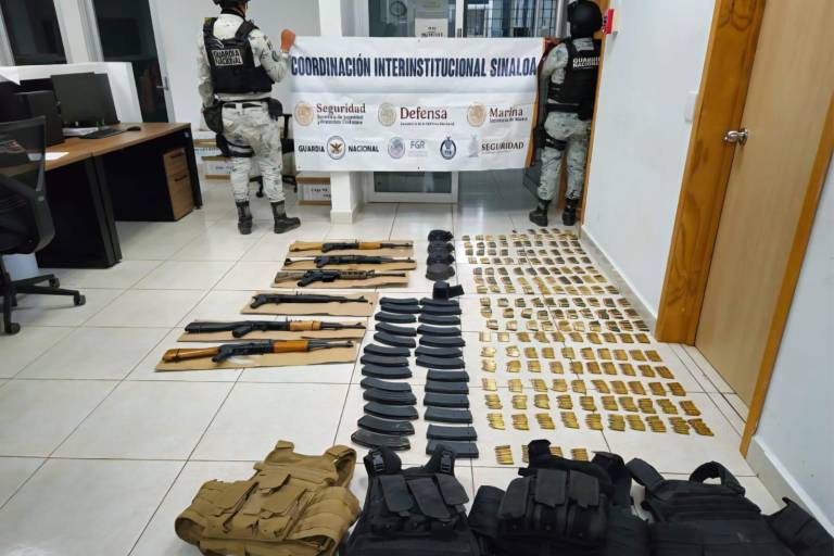CULIACÁN._ Elementos de la Guardia Nacional recuperaron dos vehículos con reporte de robo y aseguraron armas de fuego, cartuchos, cargadores y equipo táctico en la colonia Esthela Ortiz, en la capital sinaloense.