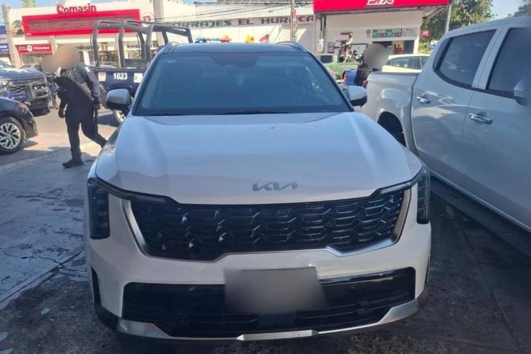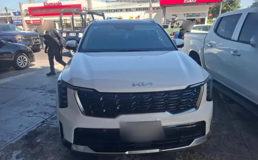 La unidad, una Kia Sorento modelo 2025, color blanco, fue ubicada en estado de abandono en el estacionamiento de un establecimiento comercial en la colonia Miguel Hidalgo.