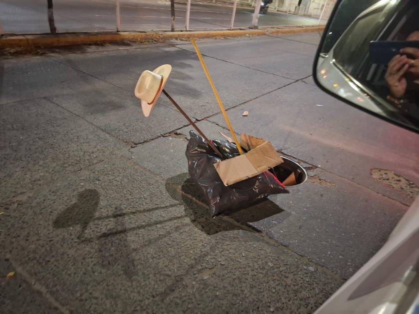 El bulto fue puesto a propósito para avisar sobre una alcantarilla abierta