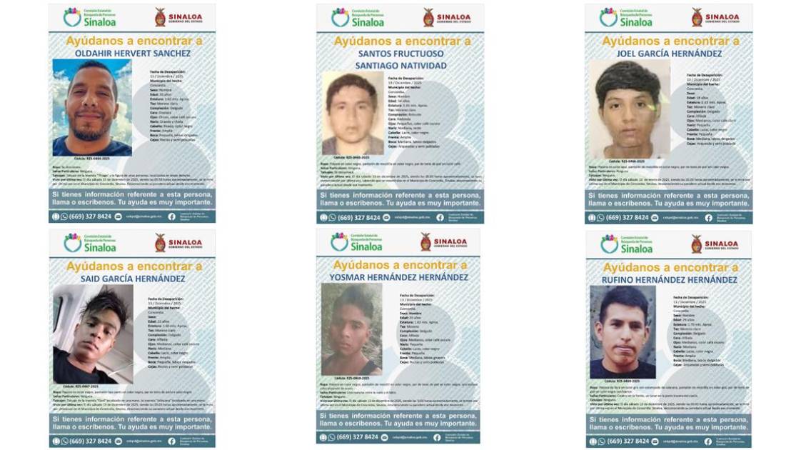La Comisión Estatal de Búsqueda de Personas de Sinaloa informó por separado de cada una de las personas que se están buscando.
