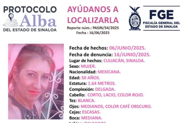 El elemento fue visto por última vez el pasado viernes 30 de mayo, a las 22:00 horas