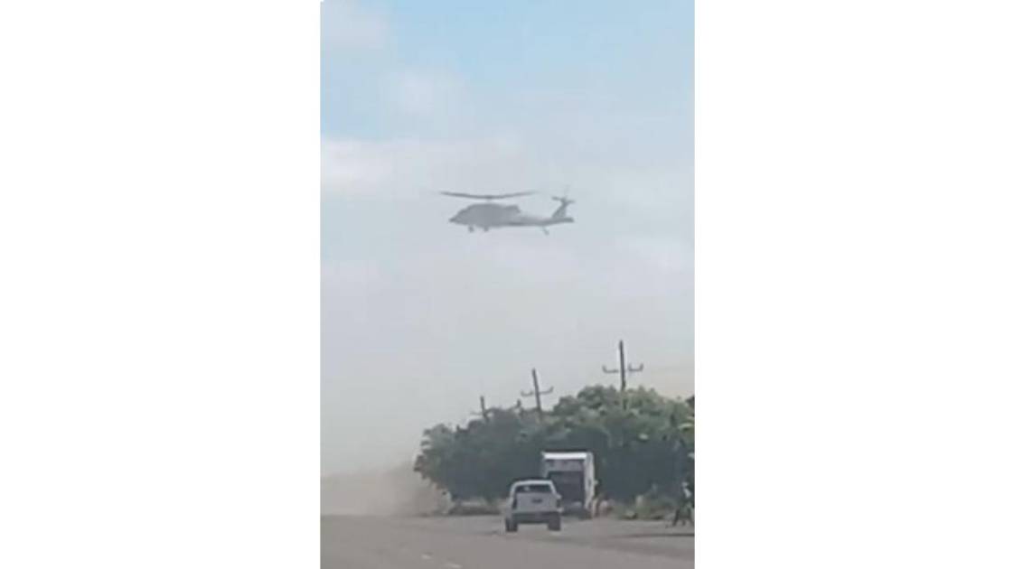 Un helicóptero de la Marina sobrevuela la zona rural de Navolato en una presunta persecución contra civiles armados.