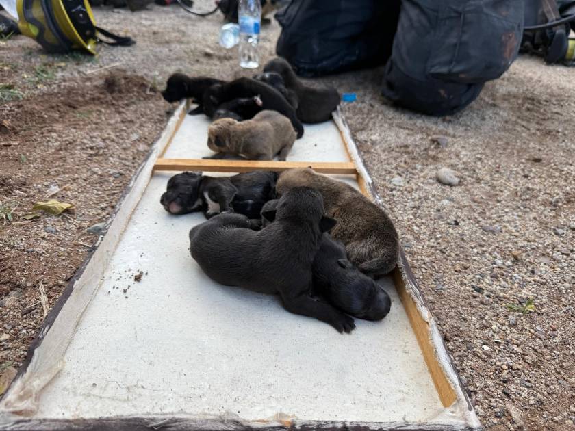 La tarde de este sábado 2 de agosto, en la colonia Lomas del Magisterio, 10 perritos recién nacidos fueron salvados por Bomberos de Culiacán tras quedar atrapados en una vivienda que fue atacada a balazos e incendiada por civiles armados.