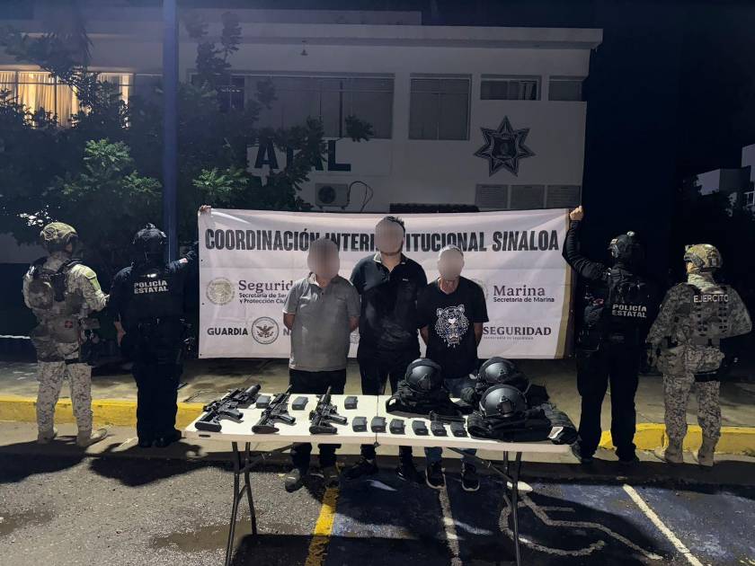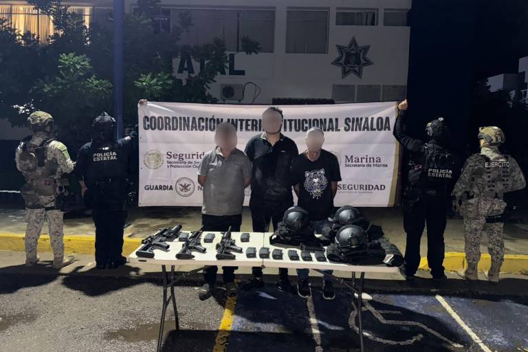 CULIACÁN. _ Una denuncia anónima al 089 derivó en un operativo interinstitucional que permitió el rescate de una mujer presuntamente privada de la libertad, la detención de tres civiles, uno de ellos menor de edad, y el aseguramiento de armamento y equipo táctico en la colonia Arboledas.