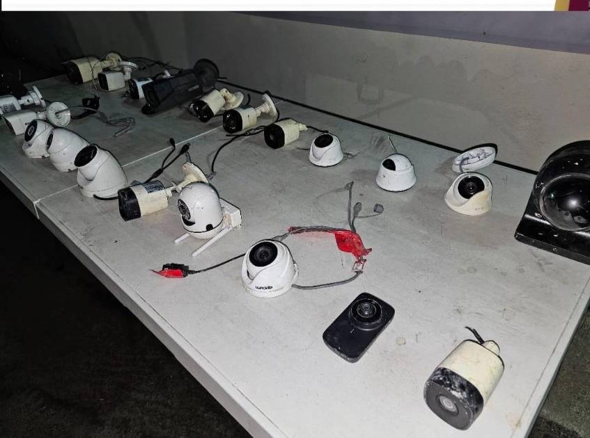 Ahí se localizaron y retiraron una cámara PTZ inalámbrica, una cámara PTZ alámbrica y 24 cámaras fijas alámbricas.
