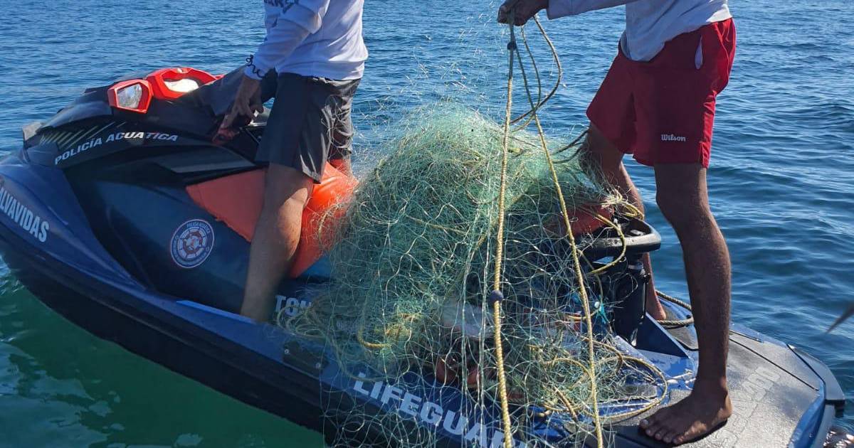 El reporte fue emitido este miércoles, por lo que el personal con Jetsky, en colaboración con Capitanía de Puerto se acercaron para inspeccionar el área y realizar maniobras para retirar la herramienta de trabajo de los pescadores, que para los mamíferos del mar pueden ser un riesgo al momento de bajar a alimentarse al agua.