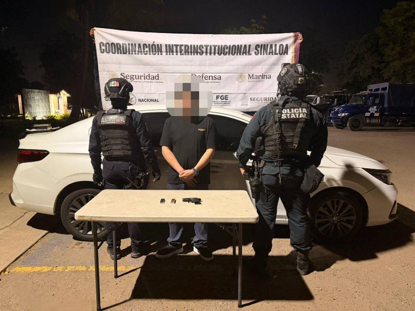 Policías estatales de Sinaloa arrestaron a un hombre con arma de fuego en Culiacán, luego de someterlo a una revisión por traer los vidrios de su vehículo con polarizado de alto grado.