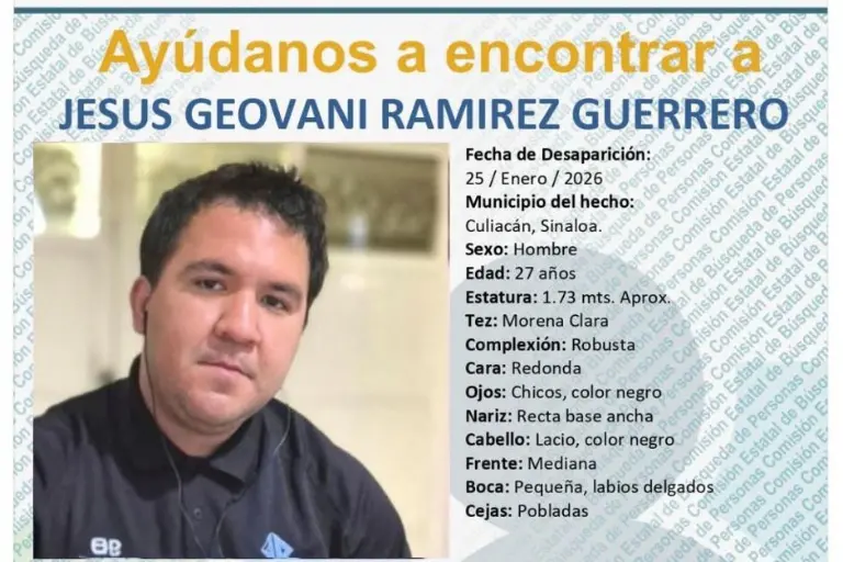 CULIACÁN. _ El domingo 25 de enero al mediodía, Jesús Geovani Ramírez Guerrero, de 27 años, salió de su casa en la colonia Miguel Hidalgo, para acudir a misa en el templo La Lomita, en Culiacán, pero ya no regresó a su hogar.