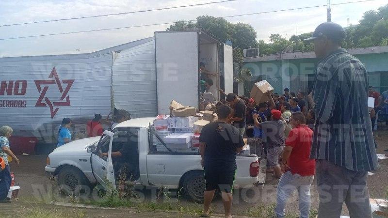 De acuerdo con testigos, el chófer intentó evitar el saqueo, suplicando a las personas que no abrieran la caja del vehículo. Sin embargo, varios sujetos forzaron el acceso y comenzaron a sustraer la mercancía. “Sacaron las cosas, dejaron poca”, relató un vecino de la zona.