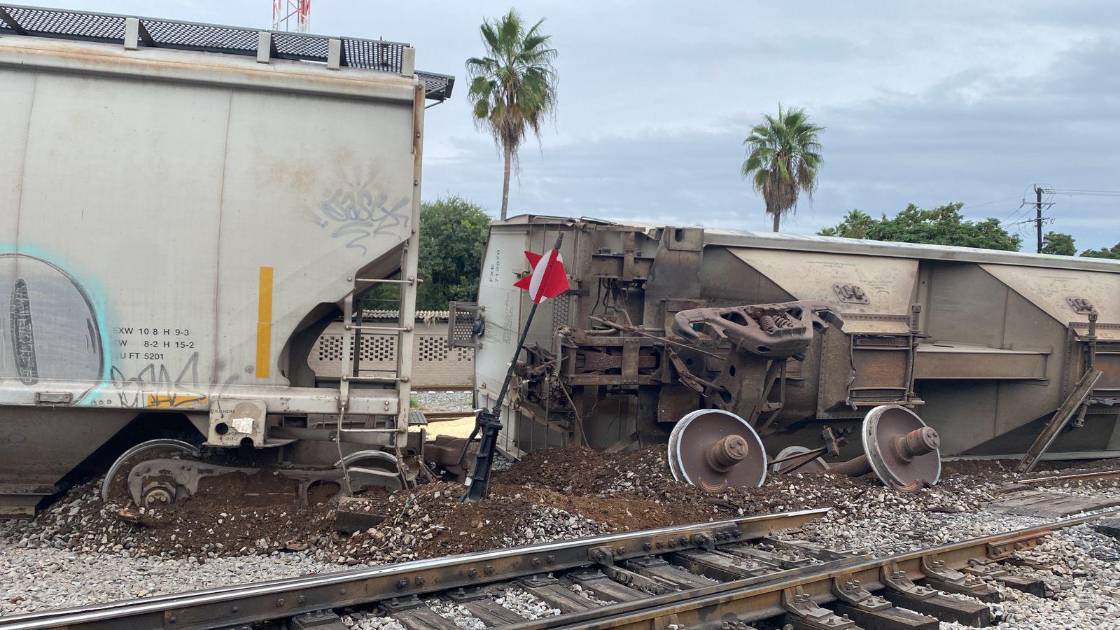 Las góndolas iban cargadas de maíz y al parecer se descarrilaron por una falla mecánica durante un cambio de vía; una de las góndolas volcó y regó toneladas del grano tras el accidente.