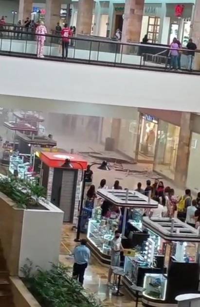 Personal de la tienda Forum señalaron qué lo que se había caído eran algunos desperdicios donde se estaban realizando los trabajos de remodelación, pero que no hubo personas lesionadas.