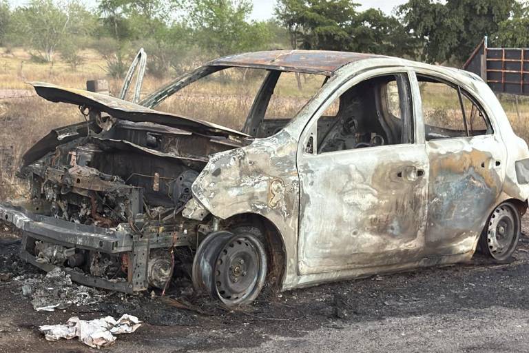 CULIACÁN._ Una falla que derivó en un cortocircuito dejó como saldo un automóvil calcinado sobre la carretera Culiacán-Navolato, a la altura de Campo El Diez, al sur de Culiacán.
