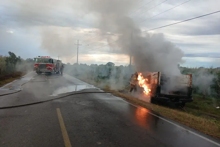 Se incendia camioneta a un costado de la carretera rumbo a Siqueros, en Mazatlán