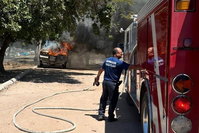 Una lancha fue consumida por un incendio mientras estaba sobre un remolque en el camellón de la avenida Sábalo Cerritos, en Mazatlán. Bomberos controlaron el fuego y policías buscan a un presunto responsable
