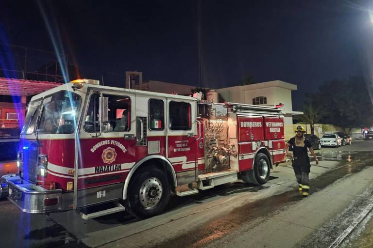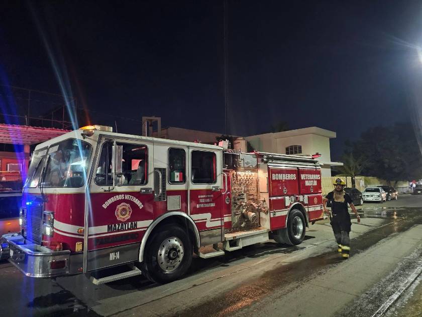 Elementos de Bomberos Veteranos de Mazatlán a bordo del camión de Bomberos 14 acudieron a sofocar las llamas; solo hubo daños materiales