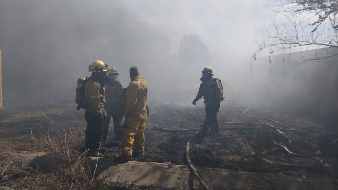 CULIACÁN. _ Una bodega utilizada para el almacenamiento de tráileres y camiones se incendió la tarde de este lunes debido a la quema de neumáticos y maleza en la localidad de Limón de los Ramos, al norte de Culiacán.