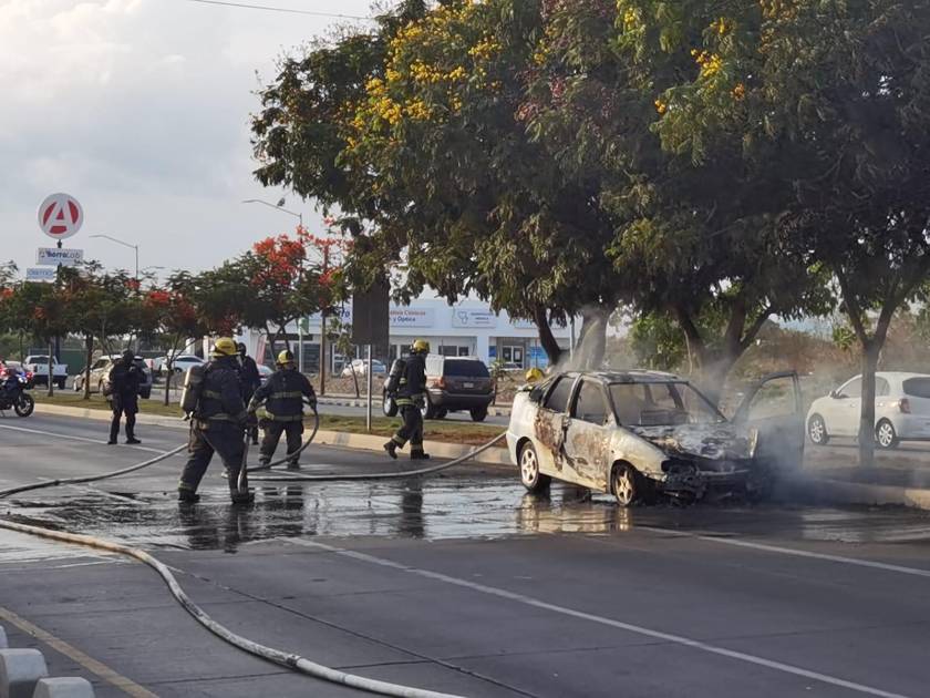 CULIACÁN._ Un vehículo se incendió cerca de la Central Camionera, en el Desarrollo Tres Ríos.