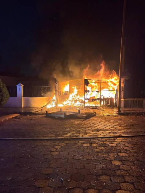 Al arribo, se encontró el fuego completamente desarrollado en la cochera de la vivienda, con alta carga de combustible sólido, por lo que se solicitó el apoyo de dos estaciones más para las labores de contención y extinción del incendio.