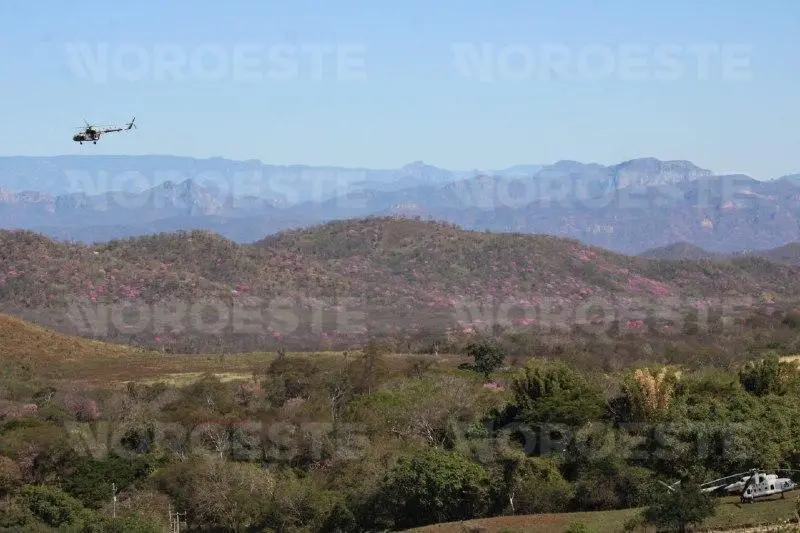 Eran hasta cuatro helicópteros de las Fuerzas Armadas sobrevolando la comunidad El Limoncito, perteneciente a la sindicatura Jesús María, escenario de un enfrentamiento entre la Secretaría de Marina con un comando armando de la delincuencia organizada.