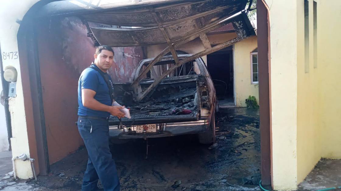 De acuerdo a la información de los bomberos el incendio inició en una camioneta Ford Lobo de color gris con negro que se encontraba en la cochera del domicilio y debido a la fuerza del fuego las llamas se extendieron al inmueble y consumió parte de la sala y la recámara.